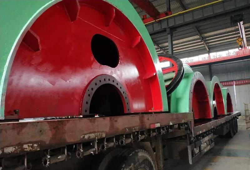 提升機(jī)的卷筒選用高強(qiáng)度低合金鋼Q345A為筒殼材料?,F(xiàn)在我們看到的是JK3.0×2.2P剖分式的卷筒。
