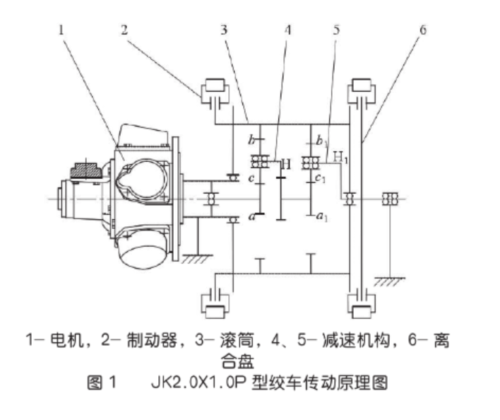 圖1 JK2.0X1.0P型絞車傳動原理圖